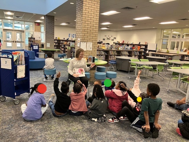 Debbie Donaldson reads to children during Read Across Henry Day